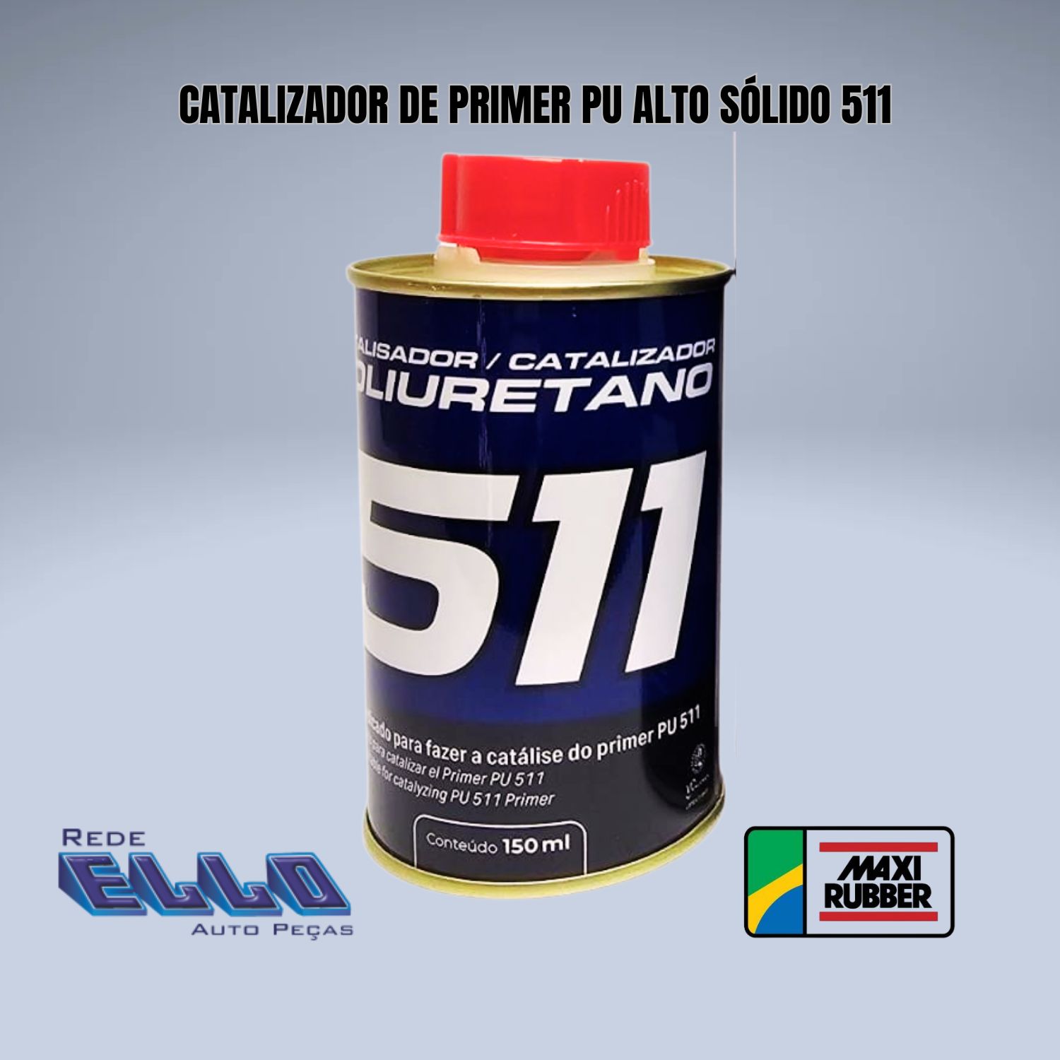 Catalizador para Fundo Primer PU cinza HS 511 de 150 ml Maxi Rubber . Alta resitência e secagem rápida para cobertura na preparação da base a ser pintada. Poder ser para chapa de aço automotiva, fibra de vidro náutico, e até madeiras tratadas. Exige a utlização do catalisador para secagem e resistência química.
