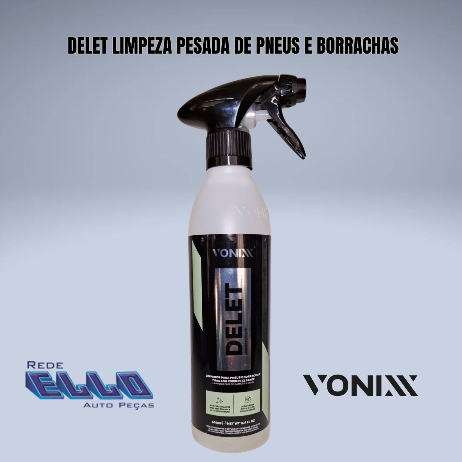 Delet Vonixx é um limpador de alta performance, formulado exclusivamente para remover sujidade severa em pneus e borrachas, garantindo total limpeza, desenvolvendo originalidade e sem deixar aspecto acinzentado. Essa limpeza ajudará a melhorar a performance dos produtos para condicionar os pneus.