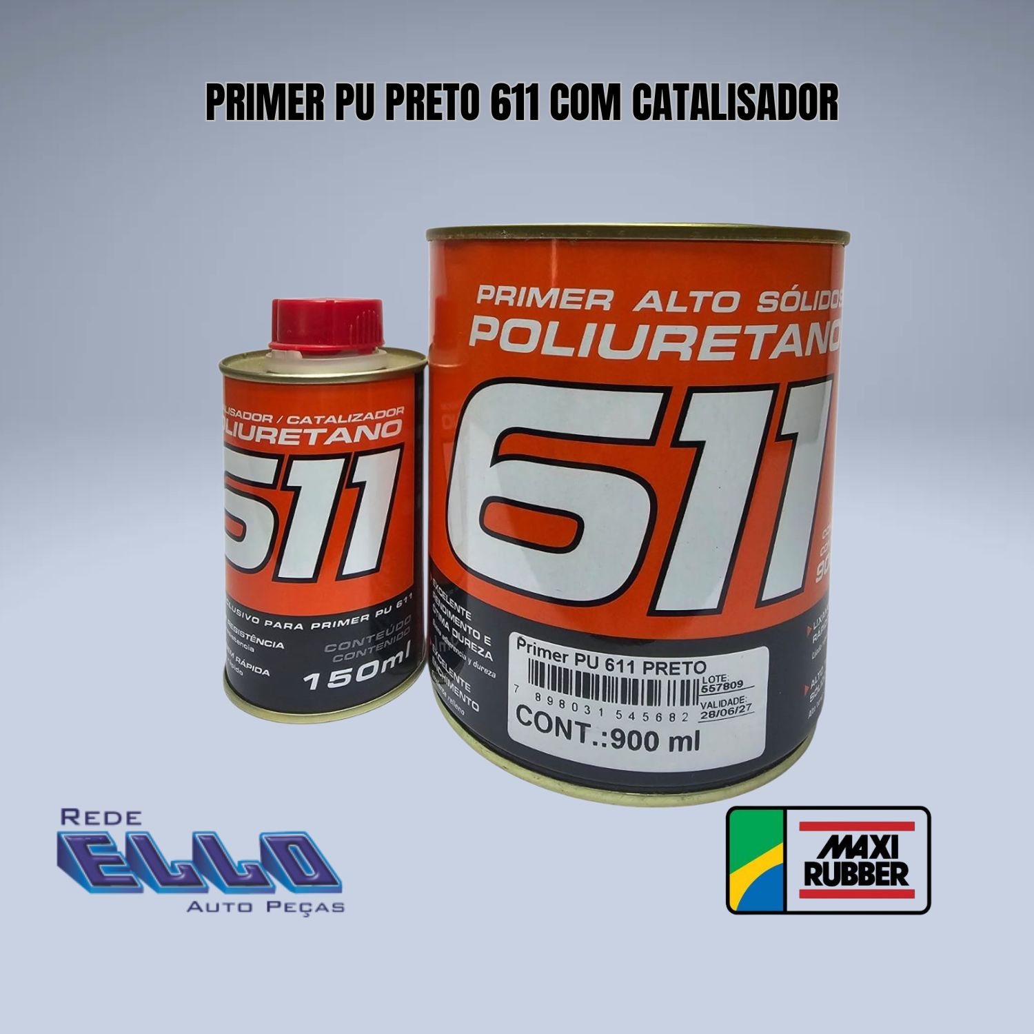 Fundo Primer PU HS 611 alto sólido na cor preta Maxi Rubber. Cobertura rápida na preparação da base preta a ser pintada. Poder ser para chapa de aço automotiva, fibra de vidro náutico, e até madeiras tratadas. Exige a utlização do catalizador 511 para secagem e resistência química.