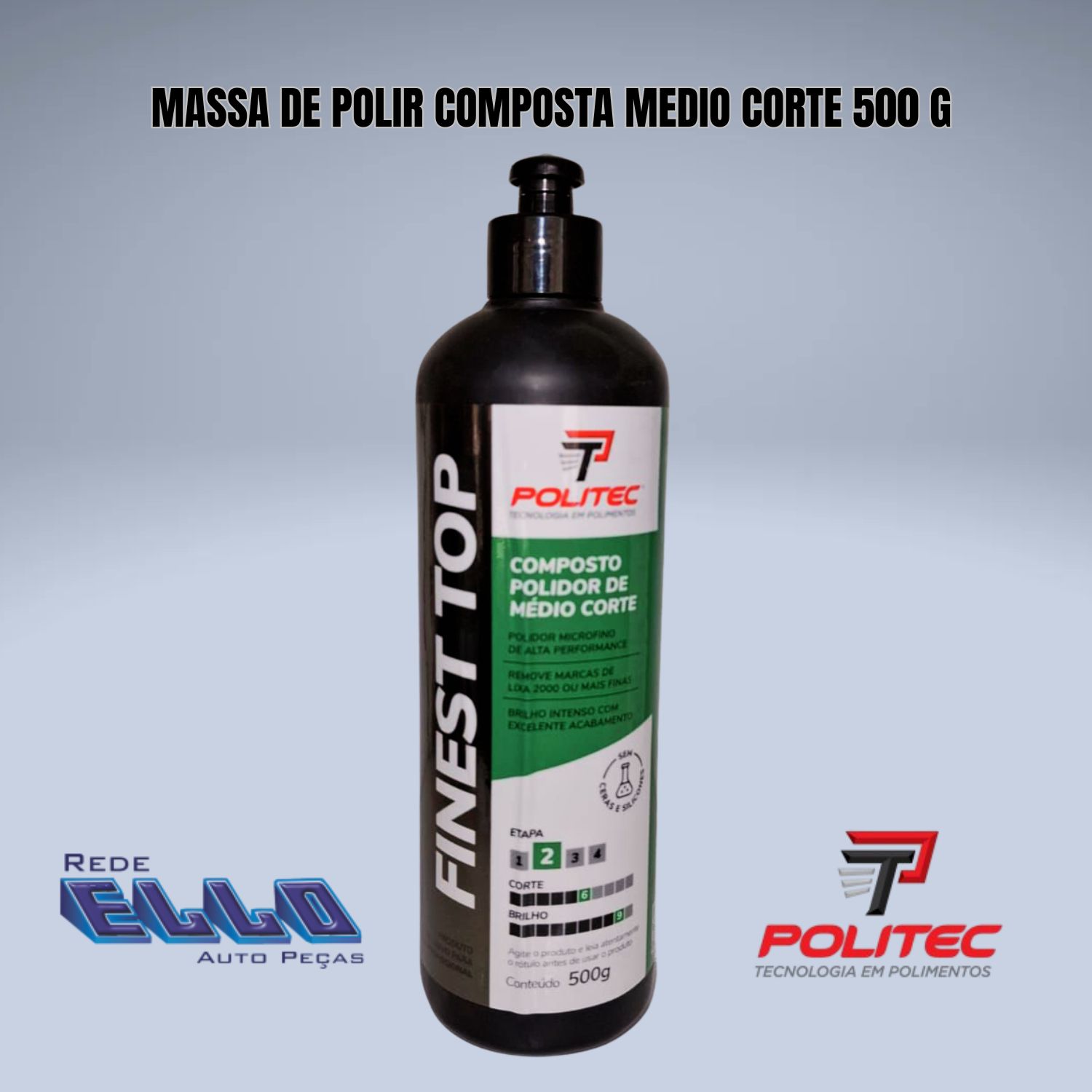 Composto polidor Finest Top extra fino de alta performance da Politec, foi elaborado para remover marcas de lixa 1500 ou mais finas. Produto versátil com lubrificação na medida certa, permite ser utilizado nas etapas de corte e refino, proporcionando acabamento limpo com brilho intenso sem mascarar a superfície trabalhada. Ideal para centros de estética, e seguro para oficinas de pintura por não possuir ceras e silicones.