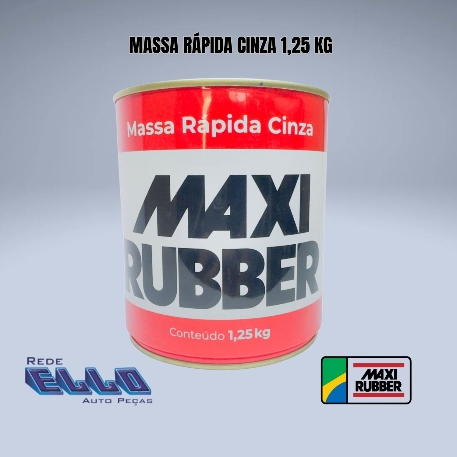 Massa Rápida Cinza Maxi Rubber de 1,25 Kg para reparo e acabamento de funilaria e pintura automotiva. Resistência e aderência de alto desempenho garantindo durabilidade e excelente acabamento. Secagerm rápida e ótima cobertura.