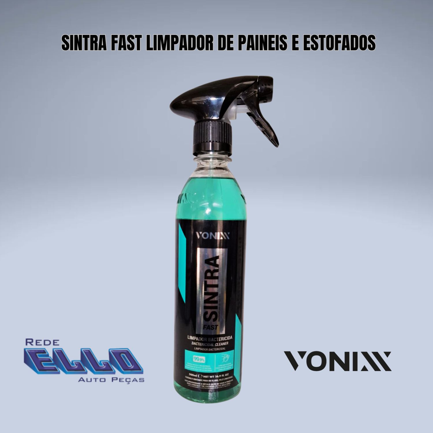Sintras Fast Vonixx é um multilimpador flotador universal, bactericida e germicida e pH balanceado, indicado para limpeza de painéis, laterais e cantos de portas, bancadas de couro, carpetes e estofados. Promove alto poder de remoção de manchas de gordura e sujeiras diversas, além de eliminar microrganismos causadores de doenças no interior do veículo. Sintra Fast diminui maus odores no interior do veículo, tornando-o saudável e livre de impurezas.