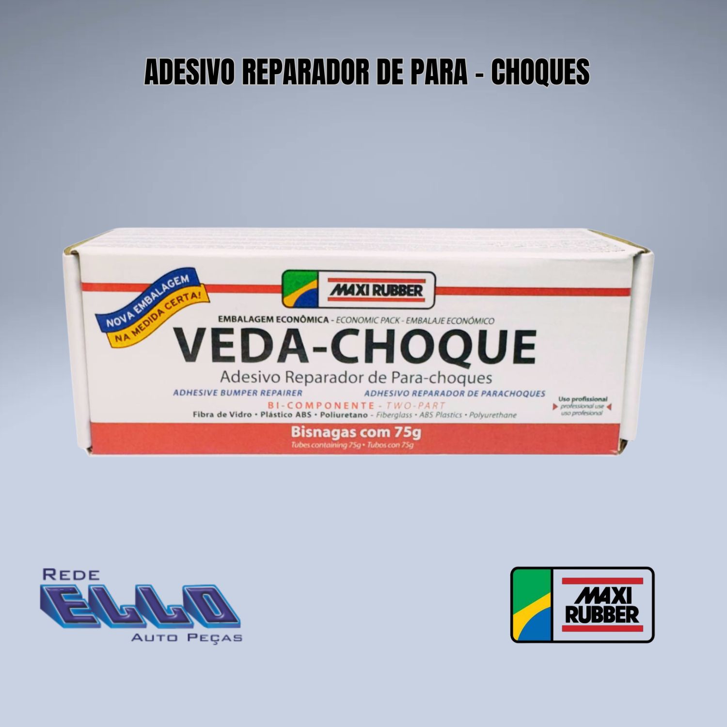 Bisnaga Veda choque para reparo em para choque plástico da Maxi Rubber. Embalagem de 75 g. Aplicado em funilaria e pintura automotiva. Resistência e aderência de alto desempenho garantindo durabilidade e excelente acabamento.